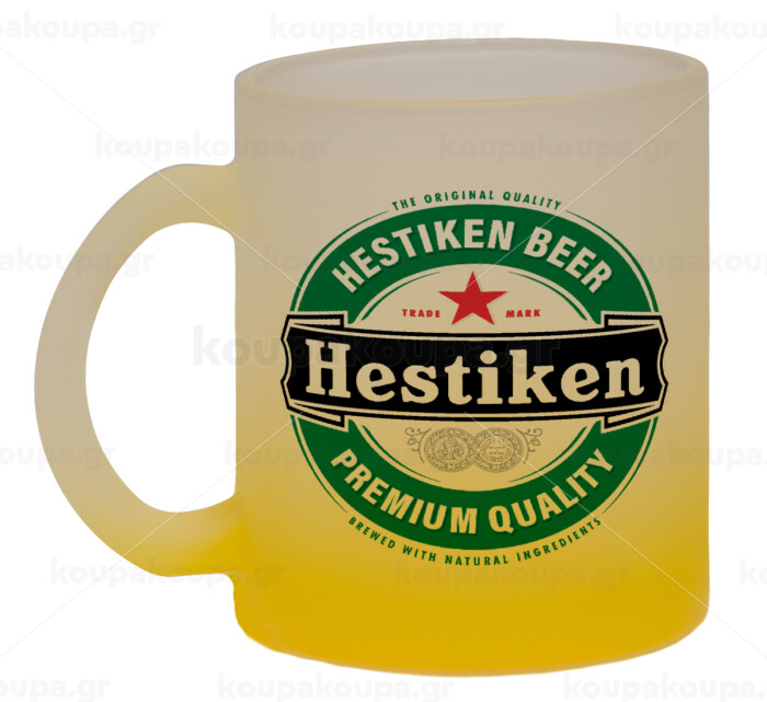 Hestiken Beer, Κούπα γυάλινη δίχρωμη με βάση το κίτρινο ματ, 330ml