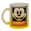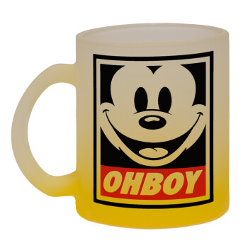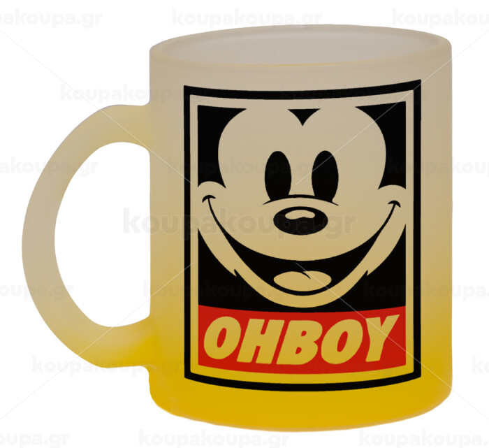 Oh boy μίκυ, Κούπα γυάλινη δίχρωμη με βάση το κίτρινο ματ, 330ml