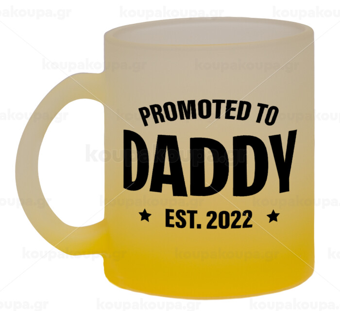 Promoted to Daddy, Κούπα γυάλινη δίχρωμη με βάση το κίτρινο ματ, 330ml