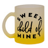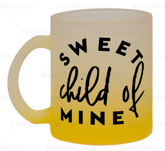 Sweet child of mine!, Κούπα γυάλινη δίχρωμη με βάση το κίτρινο ματ, 330ml