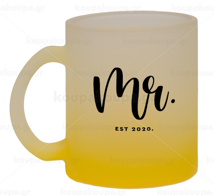 Mr & Mrs (Mr), Κούπα γυάλινη δίχρωμη με βάση το κίτρινο ματ, 330ml
