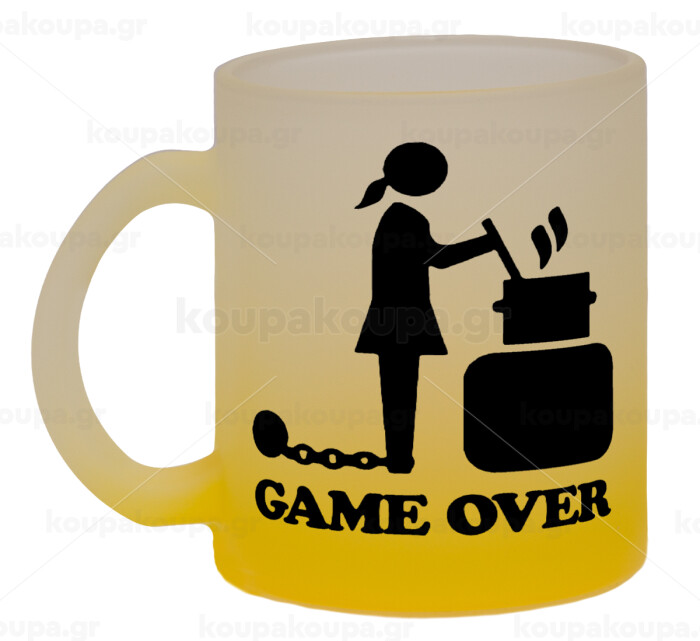 Woman Game Over, Κούπα γυάλινη δίχρωμη με βάση το κίτρινο ματ, 330ml
