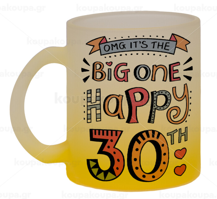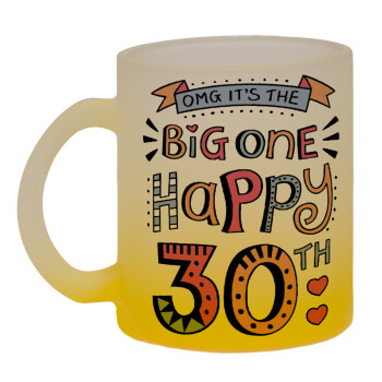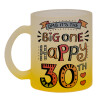 Big one Happy 30th, Κούπα γυάλινη δίχρωμη με βάση το κίτρινο ματ, 330ml