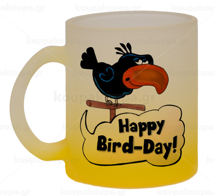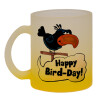 Happy Bird Day, Κούπα γυάλινη δίχρωμη με βάση το κίτρινο ματ, 330ml