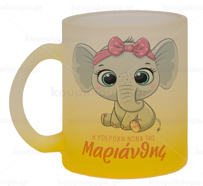 Η νονά μου, ελεφαντάκι ροζ, Κούπα γυάλινη δίχρωμη με βάση το κίτρινο ματ, 330ml