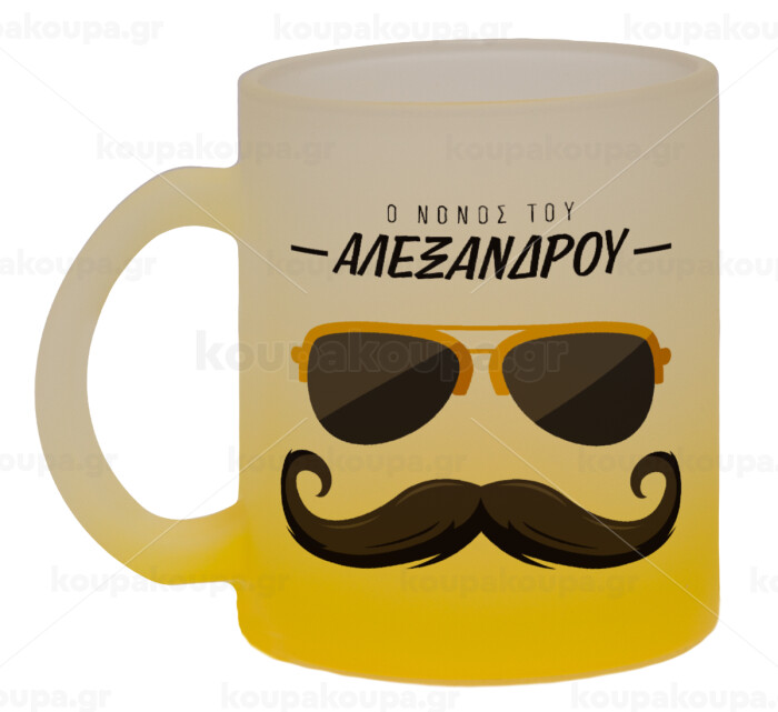 Ο νονός μου, μουστάκι με γυαλιά, Κούπα γυάλινη δίχρωμη με βάση το κίτρινο ματ, 330ml