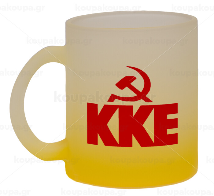 ΚΚΕ, Κούπα γυάλινη δίχρωμη με βάση το κίτρινο ματ, 330ml