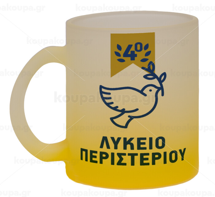 Έμβλημα Σχολικό μπλε/χρυσό περιστέρι, Κούπα γυάλινη δίχρωμη με βάση το κίτρινο ματ, 330ml