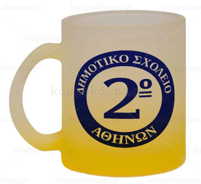 Έμβλημα Σχολικό μπλε, Κούπα γυάλινη δίχρωμη με βάση το κίτρινο ματ, 330ml
