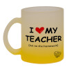 i love my teacher but no the homework, Κούπα γυάλινη δίχρωμη με βάση το κίτρινο ματ, 330ml
