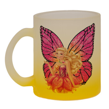 Barbie Νεράιδα, Κούπα γυάλινη δίχρωμη με βάση το κίτρινο ματ, 330ml