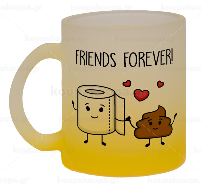 Friends forever, Κούπα γυάλινη δίχρωμη με βάση το κίτρινο ματ, 330ml