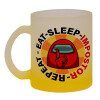 Among US Eat Sleep Repeat Impostor, Κούπα γυάλινη δίχρωμη με βάση το κίτρινο ματ, 330ml
