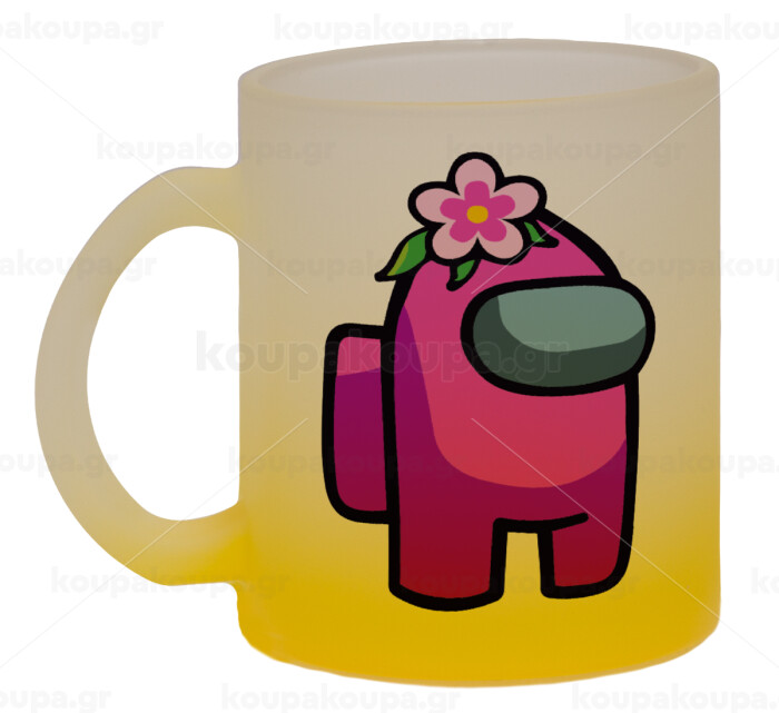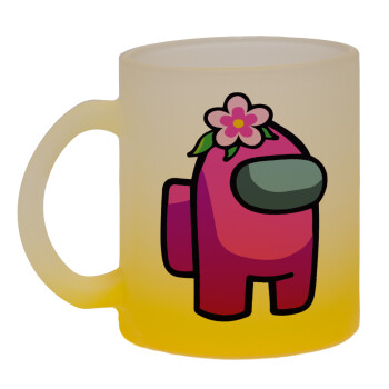 Among US girl, Κούπα γυάλινη δίχρωμη με βάση το κίτρινο ματ, 330ml