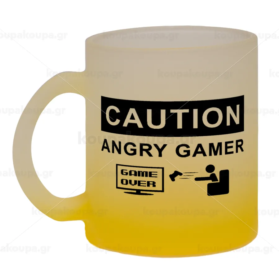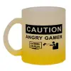 Caution, angry gamer!, Κούπα γυάλινη δίχρωμη με βάση το κίτρινο ματ, 330ml