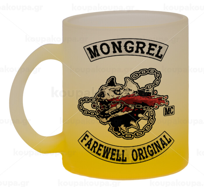 Day's Gone, mongrel farewell original, Κούπα γυάλινη δίχρωμη με βάση το κίτρινο ματ, 330ml