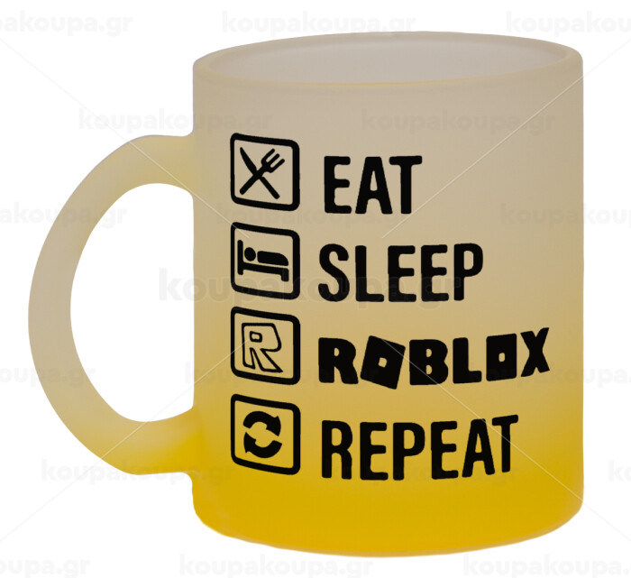 Eat, Sleep, Roblox, Repeat, Κούπα γυάλινη δίχρωμη με βάση το κίτρινο ματ, 330ml
