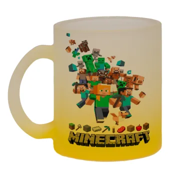 Minecraft adventure, Κούπα γυάλινη δίχρωμη με βάση το κίτρινο ματ, 330ml