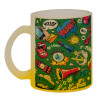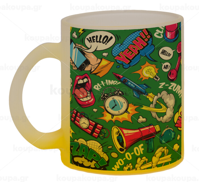 Pop art colorful seamless, Κούπα γυάλινη δίχρωμη με βάση το κίτρινο ματ, 330ml
