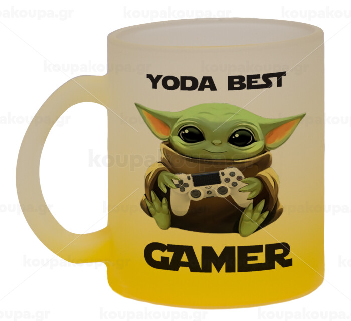 Yoda Best Gamer, Κούπα γυάλινη δίχρωμη με βάση το κίτρινο ματ, 330ml