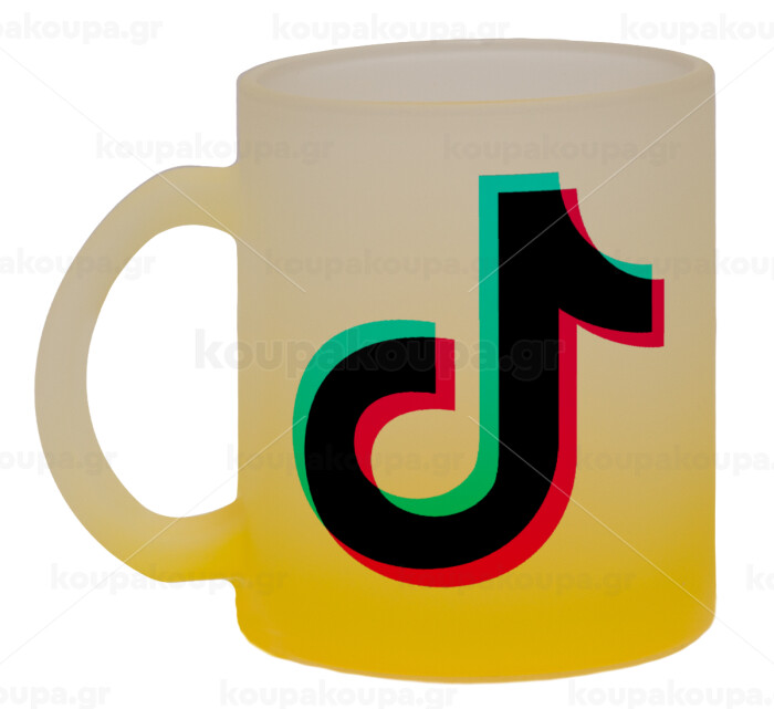 tik tok, Κούπα γυάλινη δίχρωμη με βάση το κίτρινο ματ, 330ml