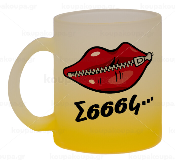 Σσσσς..., Κούπα γυάλινη δίχρωμη με βάση το κίτρινο ματ, 330ml