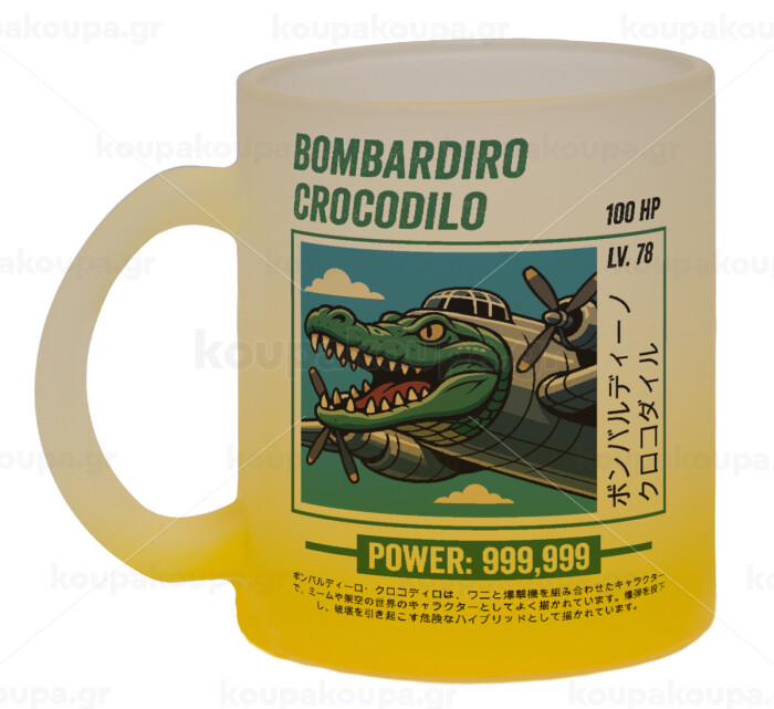 Bombardiro Crocodilo, Κούπα γυάλινη δίχρωμη με βάση το κίτρινο ματ, 330ml