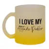I love my attitude problem, Κούπα γυάλινη δίχρωμη με βάση το κίτρινο ματ, 330ml