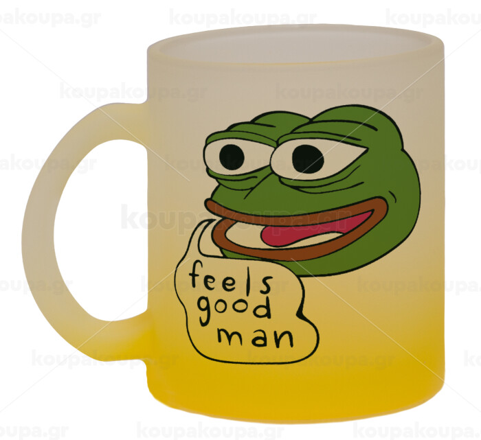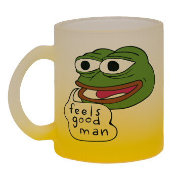Pepe the frog, Κούπα γυάλινη δίχρωμη με βάση το κίτρινο ματ, 330ml