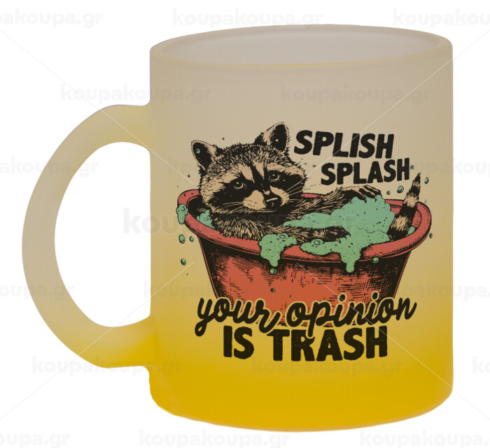 Splish splash your opinion is trash, Κούπα γυάλινη δίχρωμη με βάση το κίτρινο ματ, 330ml
