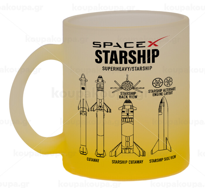 Space X, Κούπα γυάλινη δίχρωμη με βάση το κίτρινο ματ, 330ml