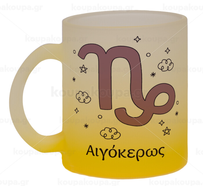 Ζώδια Αιγόκερως, Κούπα γυάλινη δίχρωμη με βάση το κίτρινο ματ, 330ml