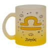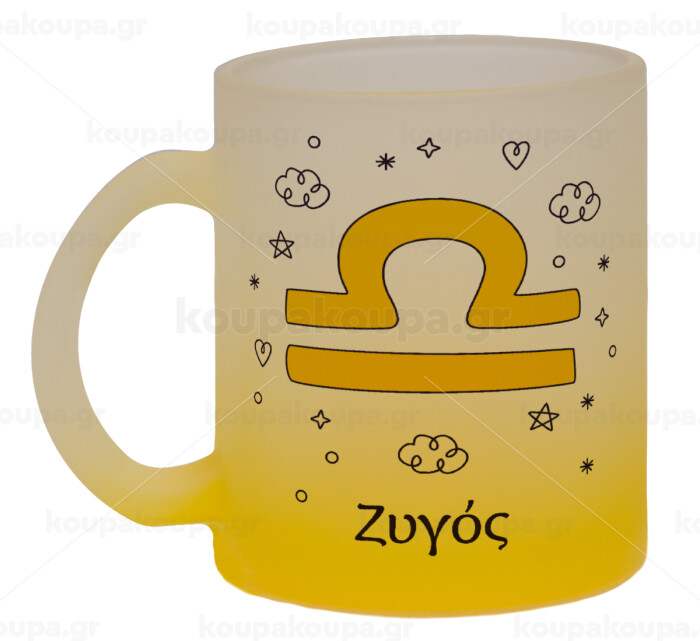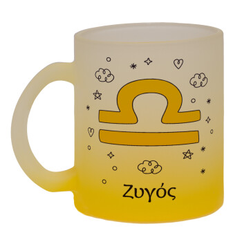 Ζώδια Ζυγός, Κούπα γυάλινη δίχρωμη με βάση το κίτρινο ματ, 330ml