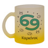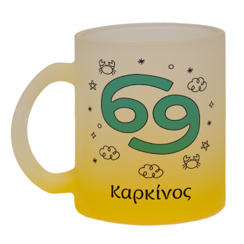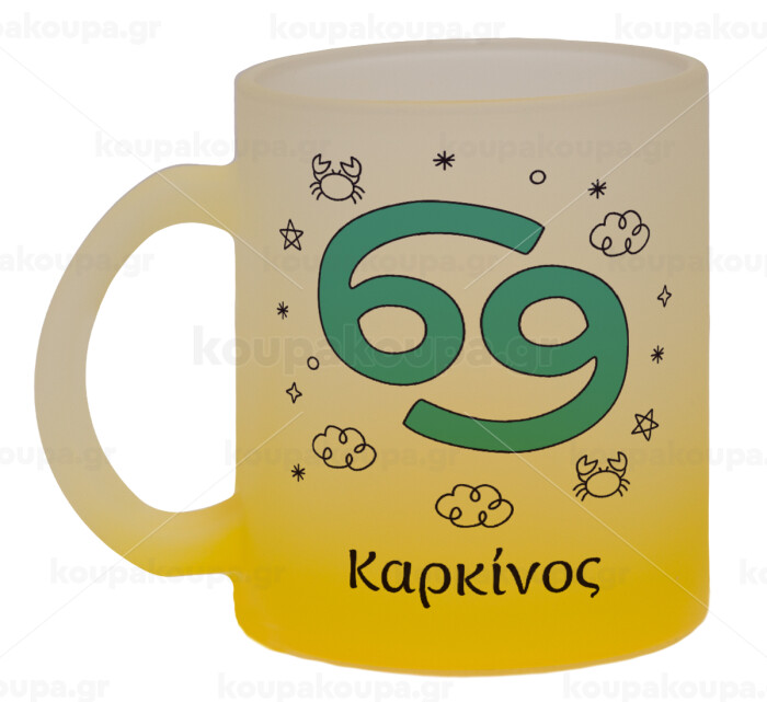 Ζώδια Καρκίνος, Κούπα γυάλινη δίχρωμη με βάση το κίτρινο ματ, 330ml