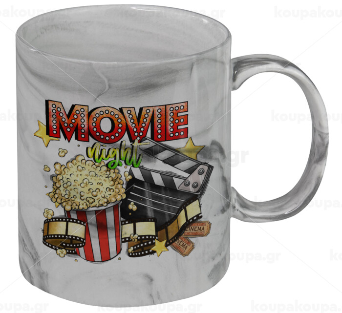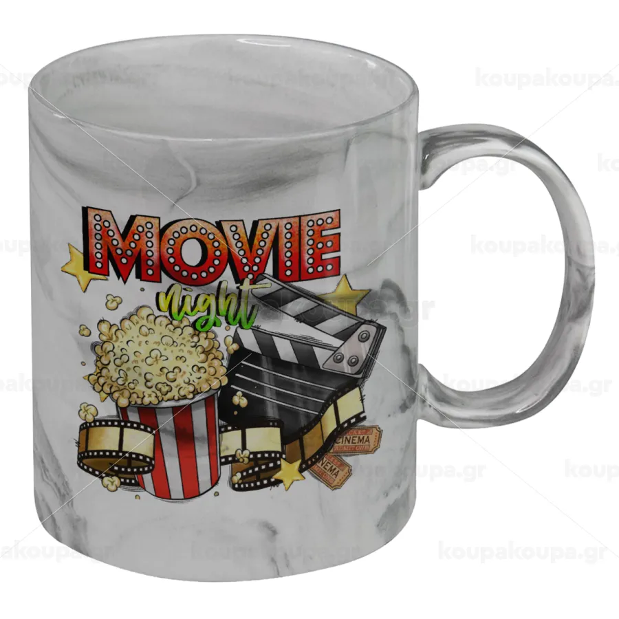 Movie night, Κούπα κεραμική, marble style (μάρμαρο), 330ml