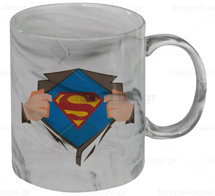 Superman hands, Κούπα κεραμική, marble style (μάρμαρο), 330ml