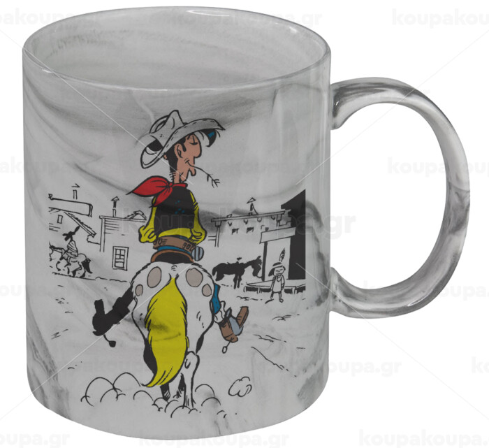 Λούκυ Λουκ comic, Κούπα κεραμική, marble style (μάρμαρο), 330ml