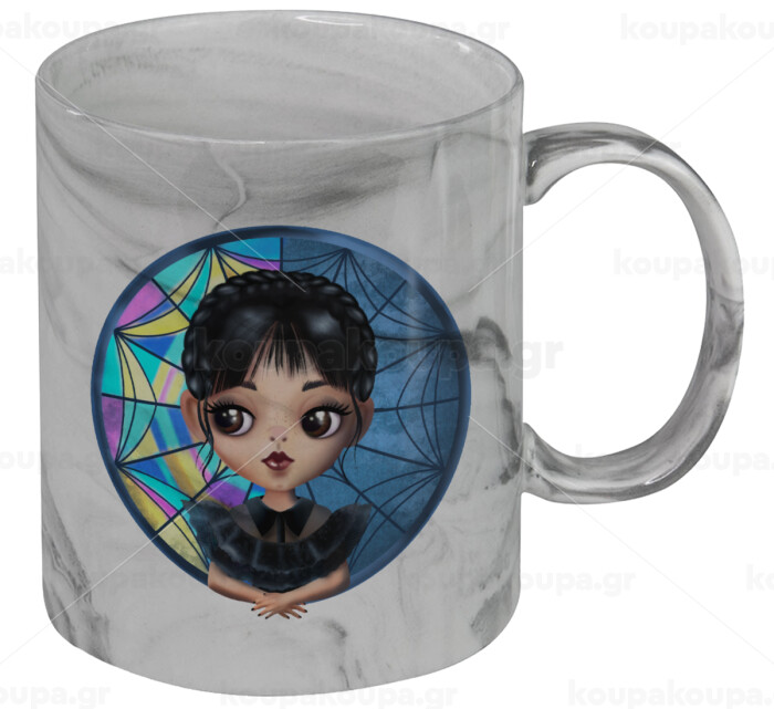 Wednesday big eyes, Κούπα κεραμική, marble style (μάρμαρο), 330ml