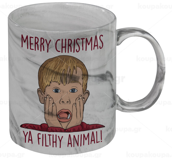 home alone, Merry Christmas ya filthy animal, Κούπα κεραμική, marble style (μάρμαρο), 330ml