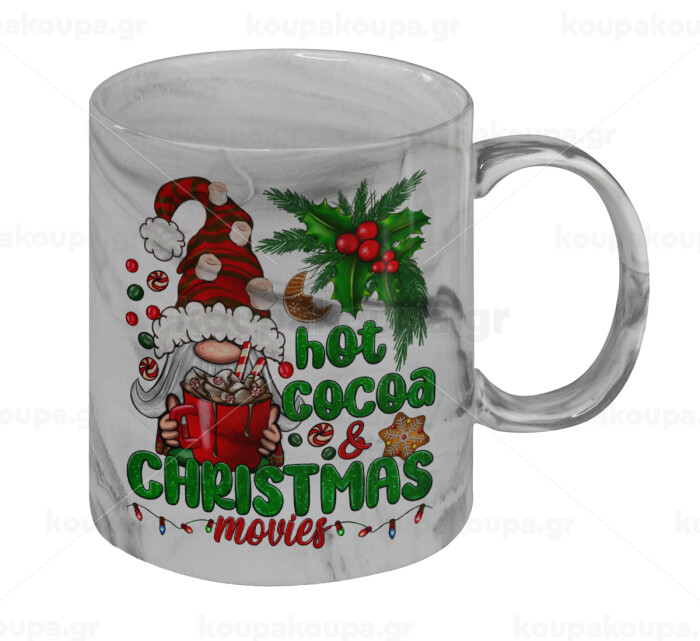 Hot cocoa and Christmas movies, Κούπα κεραμική, marble style (μάρμαρο), 330ml