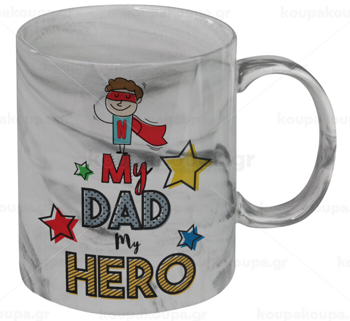 My Dad, my Hero!!!, Κούπα κεραμική, marble style (μάρμαρο), 330ml