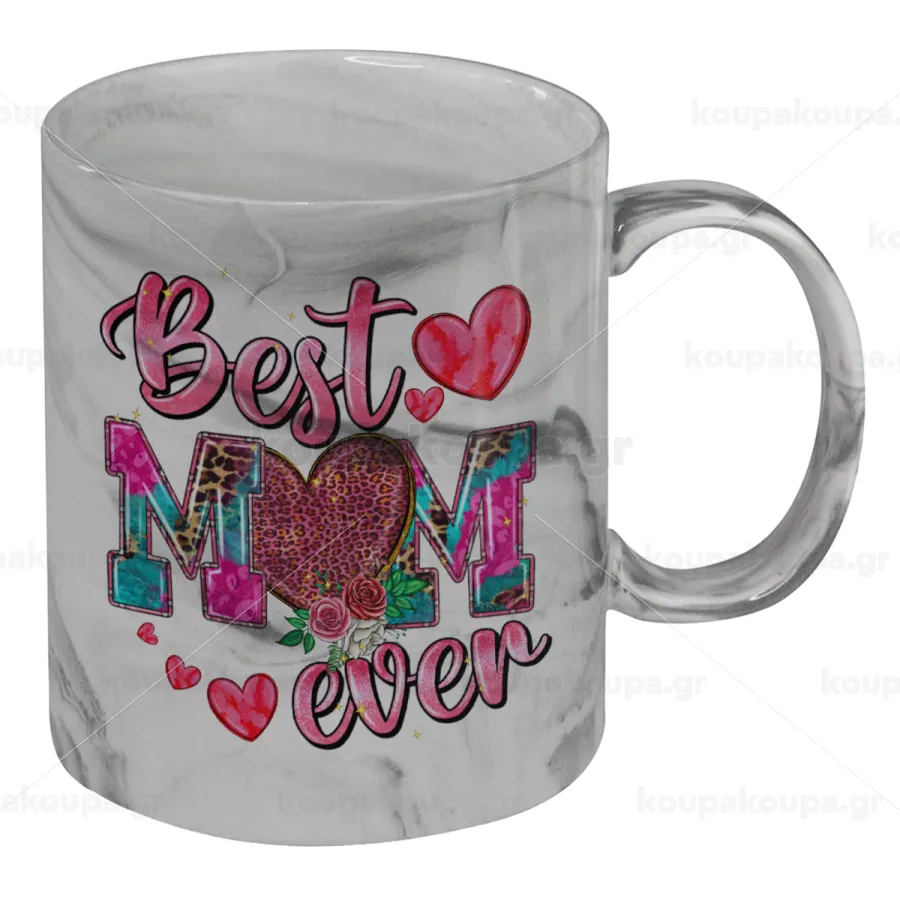 Best mom ever Mother's Day pink, Κούπα κεραμική, marble style (μάρμαρο), 330ml