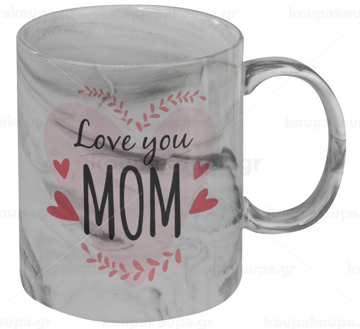 Mother's day I Love you Mom heart, Κούπα κεραμική, marble style (μάρμαρο), 330ml