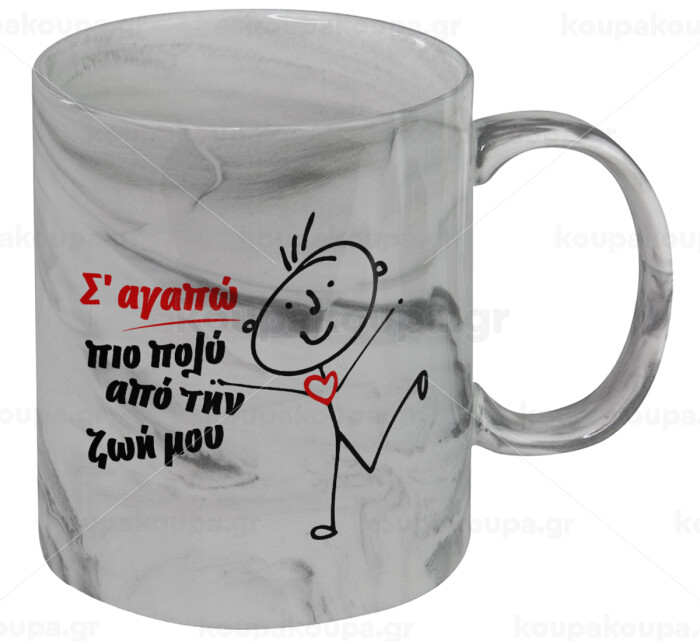 Σ'αγαπώ πιο πολύ από την ζωή μου!!!, Κούπα κεραμική, marble style (μάρμαρο), 330ml