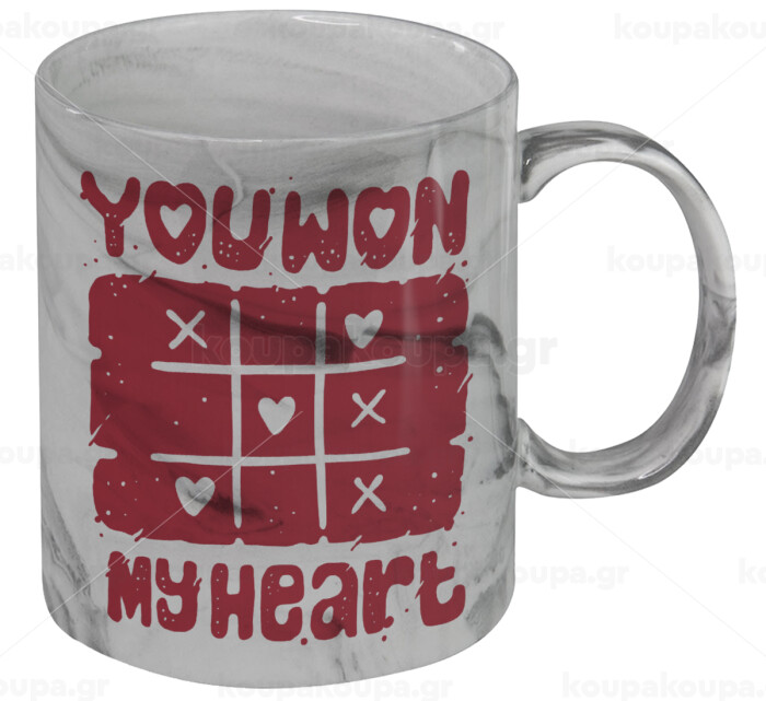 Τρίλιζα you won my heart, Κούπα κεραμική, marble style (μάρμαρο), 330ml