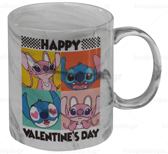 Lilo & Stitch Happy valentines day, Κούπα κεραμική, marble style (μάρμαρο), 330ml