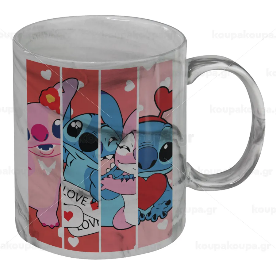 Lilo & Stitch Love, Κούπα κεραμική, marble style (μάρμαρο), 330ml