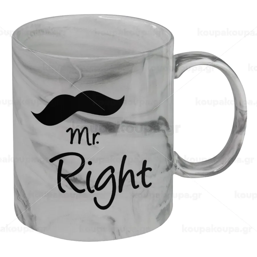 Mr right Mustache, Κούπα κεραμική, marble style (μάρμαρο), 330ml