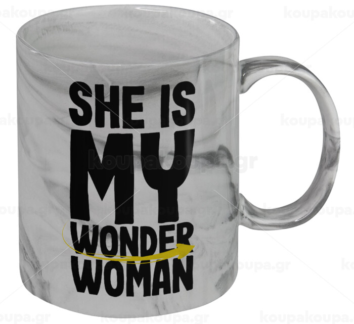 She is my wonder woman, Κούπα κεραμική, marble style (μάρμαρο), 330ml