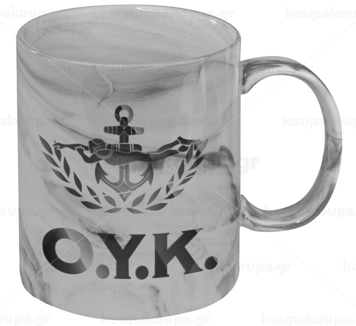 Ο.Υ.Κ., Κούπα κεραμική, marble style (μάρμαρο), 330ml